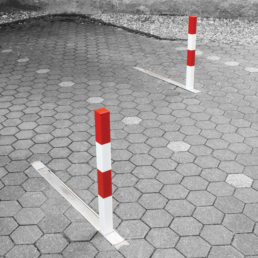 Absperrpfosten verzinkt 70x70mm mit Bodenwanne und Dreikantschlüssel